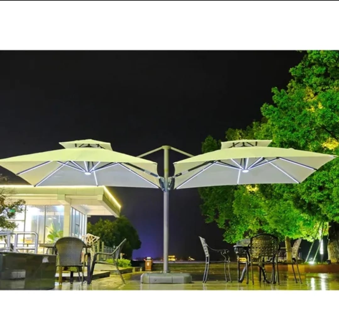 Double‑top canopy Two‑tier (double‑top) design improves air circulation and releases wind pressure, making the umbrella more stable in breezy conditions, The vented upper layer also helps heat escape, keeping the shaded area cooler and more comfortable during hot days.